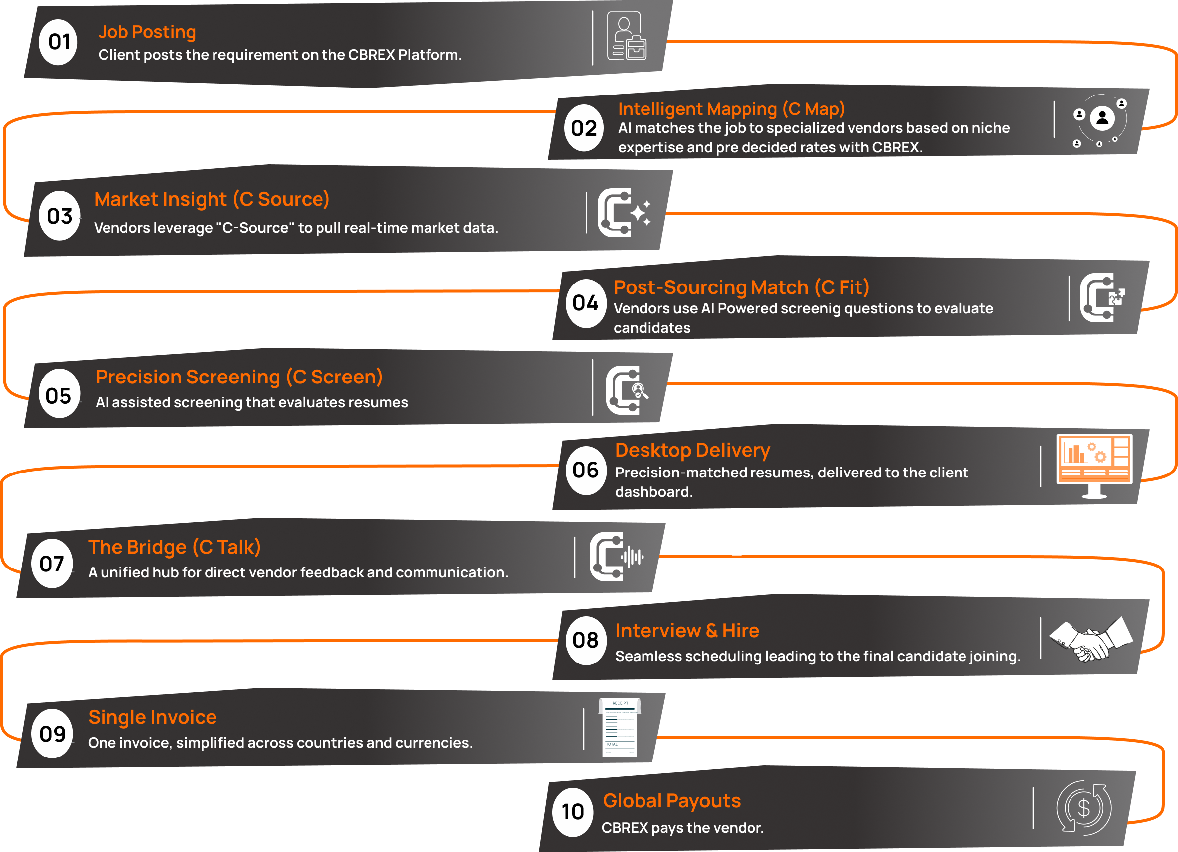 Source local and outside talent on CBREX by leveraging the expertise of 850+ specialized recruiting agencies.